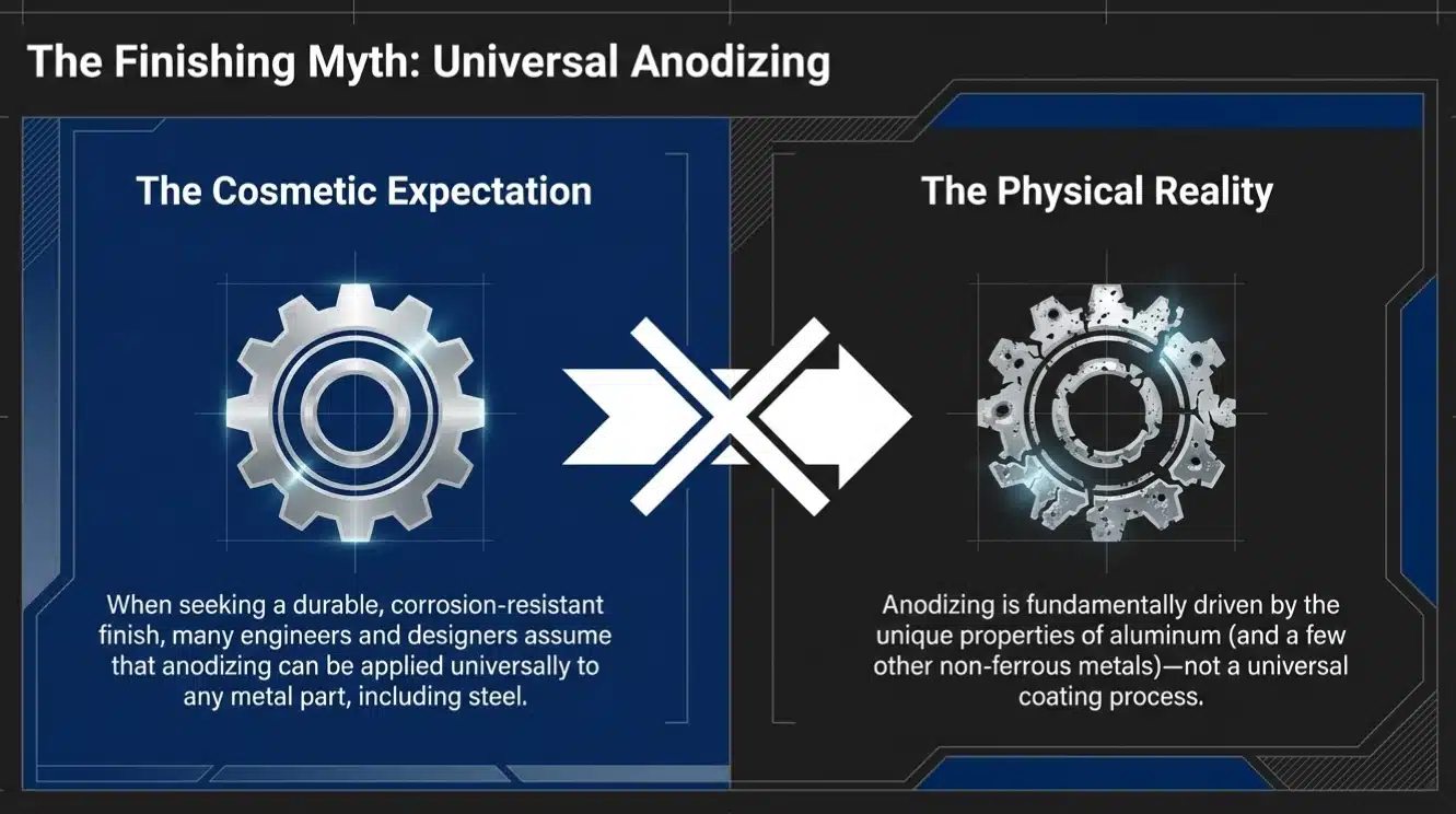 Understanding the electrochemical physics behind aluminum anodizing versus steel oxidation.